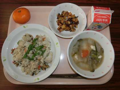 今日は節分。献立にも鬼の追い払う「いわし」と「豆」を使いました。いわしは焼いた時の煙で鬼を家から追い払うそうです。またいわしを柊の枝にさして玄関に飾るのは、いわしのにおいで鬼を誘いだし、柊のとがった葉で鬼の目をさして家に入れないようにするそうです。「豆」はご存じの通り「鬼は外、福は内」。昔の人は食を通じて健康を願っていたことがよくわかる風習ですね。