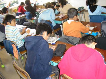 3年生は、先生が来る前に、着席し、一人一人が工夫して過ごしています。