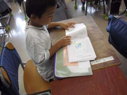上の画面は、1年生・・・朝の会で音読する・・・詩集を読んでいました。