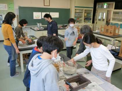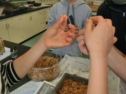 グリーンボランティアの方からご指導をいただきながら、環境委員会の6年生と5年生が、サギソウの植え付けを行いました。植木鉢の底に軽石を入れ、その上に水苔を鉢の高さの半分くらいまで敷き詰め球根を置きました。白くて小さな球根にびっくりしていました。その上をまた水苔で覆って出来上がりです。かわいらしい、白い花が咲くのが楽しみです。