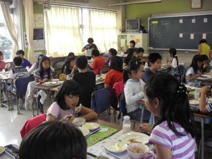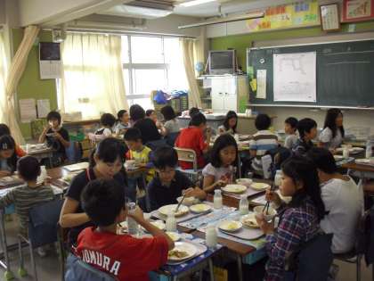 上の画面は、3年生・・・・下の画面は、4年生です。グル−プで・・楽しく、おいしく食べています。
