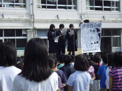 校長室で、最終打ち合わせをしてから・・・発表です。さすがに中学生!堂々として、立派でした。