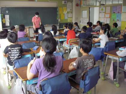 3年生の教室、・・・朝の会で“礼の仕方、会釈の仕方”などについて、先生から分かりやすく話していました。子どもたちが、これから成長していくうえで大切なことです。