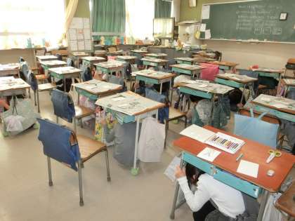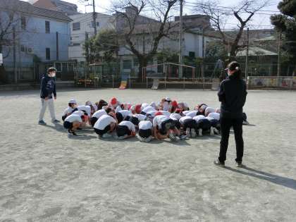 午前9時30分から、防災行政無線放送のお知らせで、世田谷区いっせい防災訓練(シェイクアウト訓練)を行いました。大きな地震が起きたことを想定し、一斉に身の安全を図る訓練です。どの子も真剣に取り組みました。