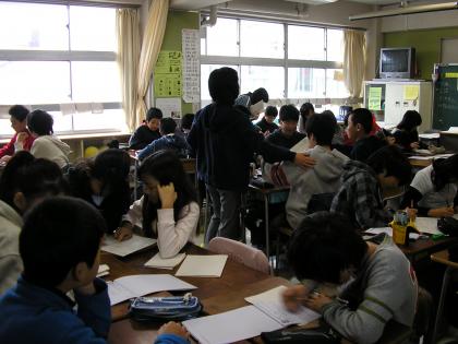 6年生は、算数「割合」の学習の再確認をTTで授業をしていました。6年生の学習の中で、子どもがまちがいやすい教材のひとつです。どの子どももわかることを常に目指しているところです。