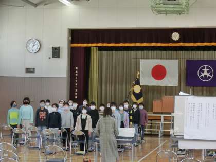 音楽で、卒業式で歌う歌の練習をしました。マスクをしているので、なかなか難しいですが、よく歌えています。