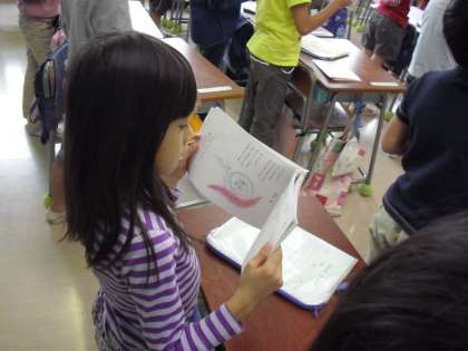 1年生の教室では、・・・“音読から一日がスタート!”まど みちおさんの詩。