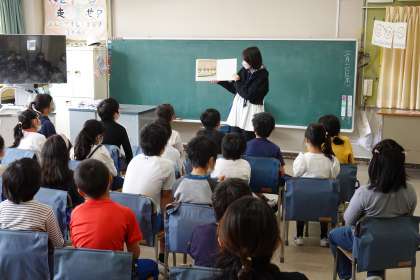 途中、歌に合わせて体を動かし、リラックスしながら読み聞かせを聞きました。手作りのちらしを持ち帰りました。お家でどんなお話だったか聞いてみてください。1年間、様々な物語に触れることができました。