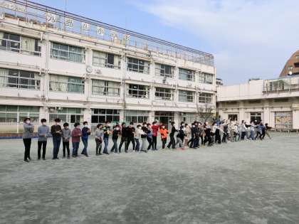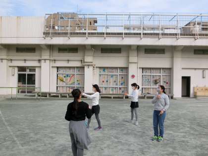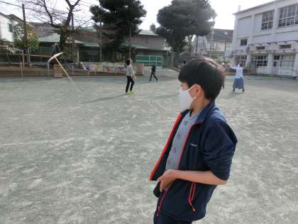 今日、6年生は地域の方からいただいた竹とんぼを飛ばしました。一つ一つ手作りだと聞き、大切に飛ばしました。友達と高さを競ったり、みんなで一斉に飛ばしたりしてとても楽しそうでした.