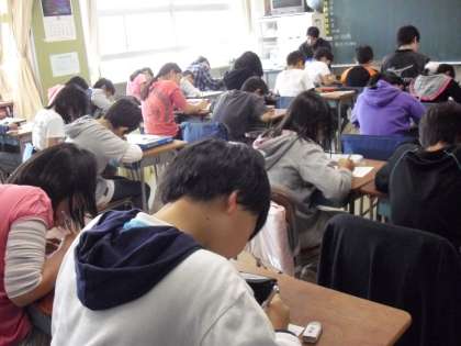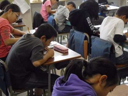 “朝 漢字テスト”繰り返し取り組んでいる学習の一つです。繰り貸すことで覚える漢字の数が増えていきます。みんな真剣に取り組んでいます。