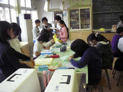 6年生は、“クッション作製”です。慣れない針をもち・・・縫っていました。
