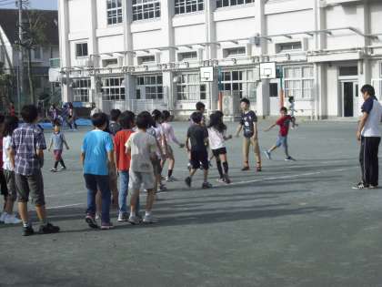 10月25日(月)穏やかな九品仏小の朝:長なわとび