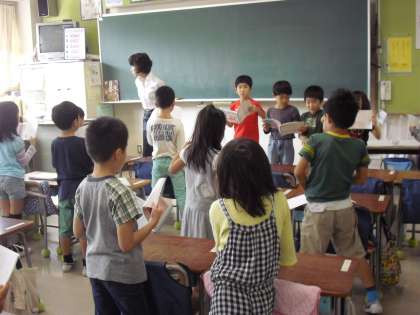 “てるてるぼうず”の音読・・・怒鳴らないで・・・おなかから声をだして・・音楽の先生に指導されているように・・・と、担任の先生から・・・アドバイス・・・