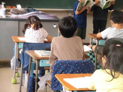国語科の学習では、「ふきのとう」の音読発表会を行いました。