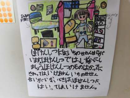 この学習のために2年生は事前に学校探検をして、ポスターを作り、教室の前にはって準備をしてきました。