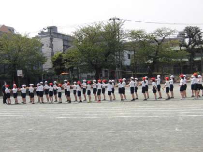 体育の時間は、校庭1周を走りタイムを測りました。今日は天気が良く、とても気持ちの良い時間でした。