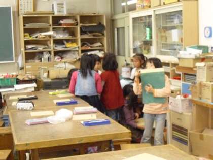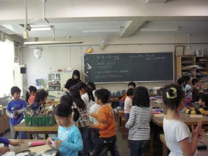 2年生は、専科授業:図工です。展覧会の作品作り・・・