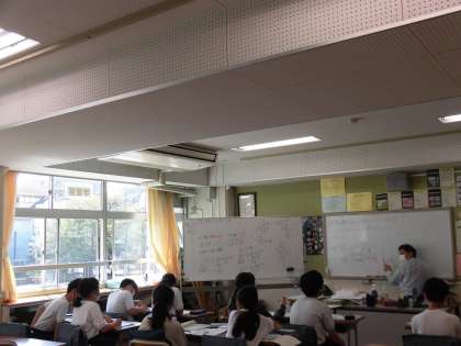 分数のかけ算では、数直線を使いながら、子どもたちが説明を行っています。自分の考えをしっかりと述べています。