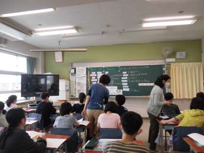 外国語の学習では、4月に赴任された校長先生からメッセージをもらい、英語で自己紹介メッセージを送りました。自分の好きなこと、誕生日などそれぞれに自分のことを英語で表現しました。