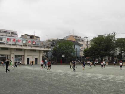 中休みの時間になると子供達は校庭に飛び出し、ボールや遊具で遊んだり、先生も一緒になって体を動かしています。