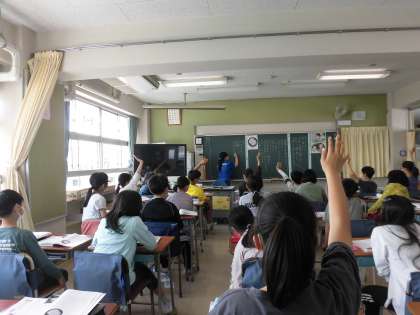 道徳科の授業では、資料「命のあさがお」を題材に生命尊重について話し合いました。主人公の心情に寄り添いながら、クラスで話し合いを進めていきました。