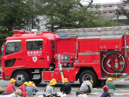 身近にみる消防車の迫力に、感動する1・2年生の子どもたちでした。