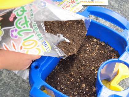 小1サポーターのみなさんにご協力をしていただきながら、朝顔を植えました。