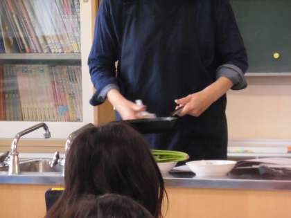 家庭科では、調理実習に向けてフライパンの種類によって、洗い方が違うことを学びました。