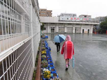 昨日から続いていた雨が、校庭に大きな水たまりを作っています。