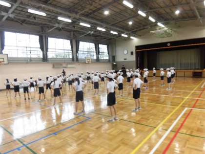 先生の話を聞きながら、気持ちを一つにして完成に向けて取り組んでいます。