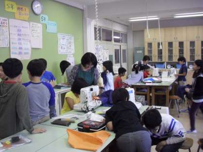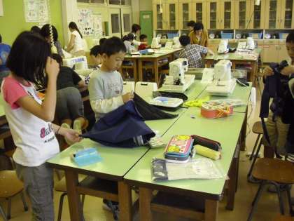 5年生は、“専科授業:家庭科:マイ バック作り”・・・