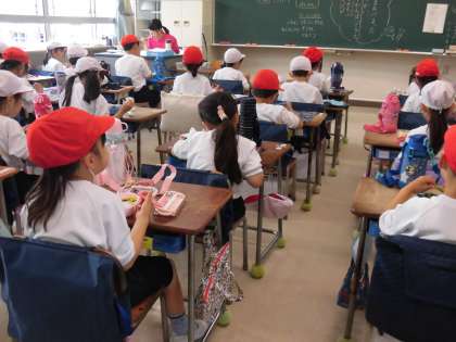 みんなお家の方が作ってくださったお弁当を喜んで食べています。