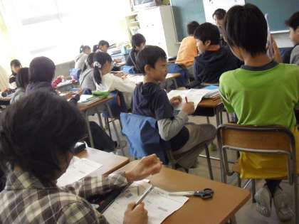 “算数科:少人数指導・拡大図と縮図”の学習です。みんな真剣に課題に取り組んでいました。