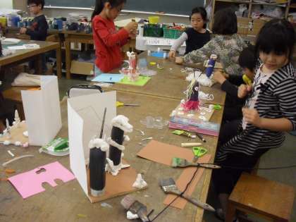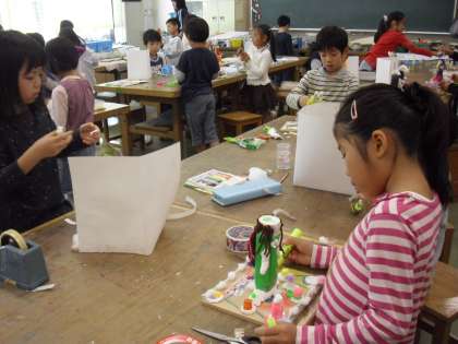 2年生は、図工の学習・・・・展覧会へ向けた“作品作り”の仕上げをしていました。