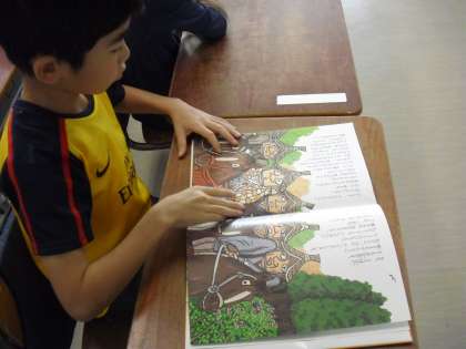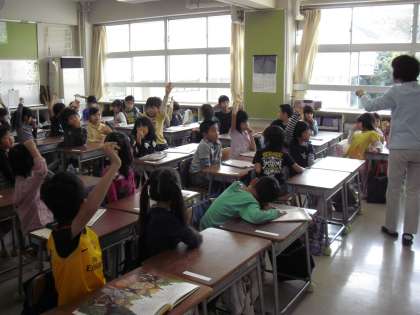 “朝 読書”が終わり・・・朝の会・・・・“防犯ブザー”をランドセルにつけているかなど確認をしていましした。