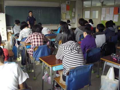 朝の会・・・先生の話・・・自分で考えたことを行動にうつすことの大切さを話していました。