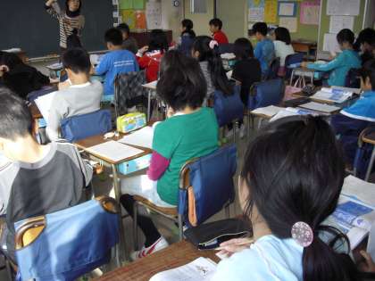 1時間目は、“理科:水の3つのすがた”・・・・実験したことをグラフにまとめる方法について丁寧に説明していました。