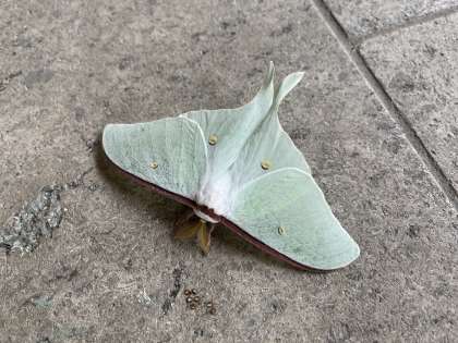玄関のところにオオミズアオがいました。羽も触角もきれいに残っています。