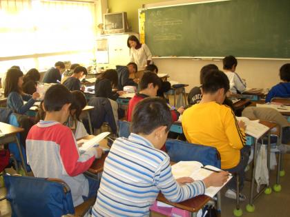 4先生は、算数の「分数」の授業を2グループに分かれ、少人数の担当の先生と担任の先生から、指導を受けました。