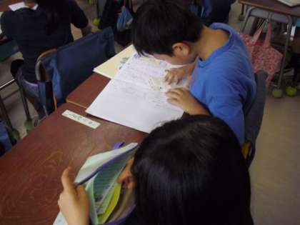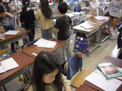 テストやプリントを配っていました。テストを見直している子どももいました。
