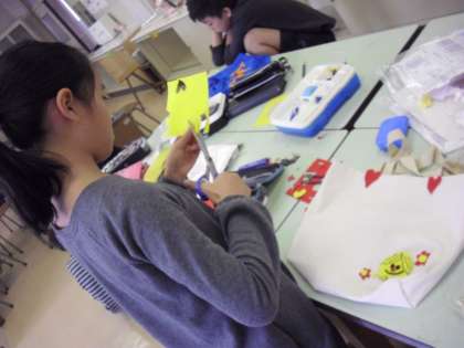 家庭科でバックつくり・・・完成に向けて取り組んでいました。