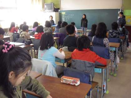 朝の会で日直さんの話・・・一人は、おばあちゃんの家に行った時の話をしていました。