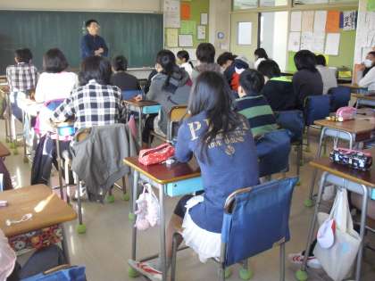 6年生は、朝の会で先生から・・・“寒くなってきたので、登下校時にポケットに手をいれていると危ない”などの確認をしていました。とてもいい雰囲気です。
