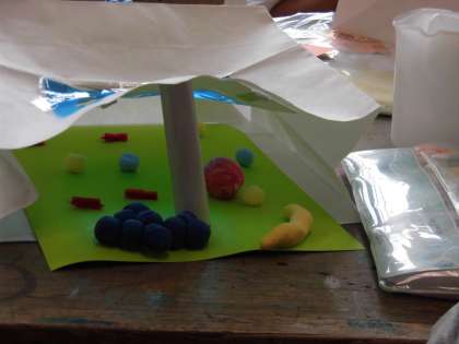 図画工作科では、紙袋の中に様々な世界が広がっています。