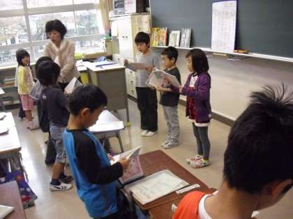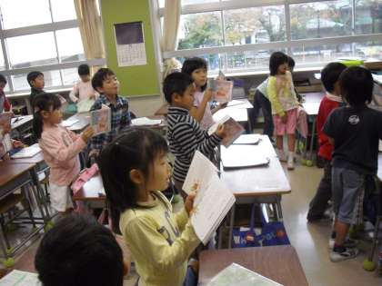 “音読:はっぱ”・・・リーダーが始めに読み・・・みんなが続いて音読します。