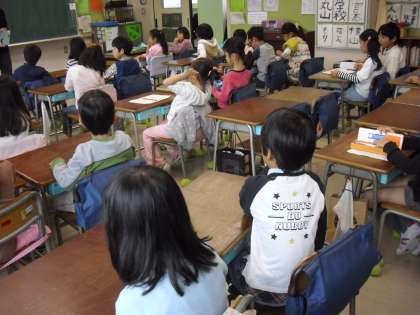 “朝の会:先生の話”今日は、特別時程で・・・と一日の予定を説明・・・