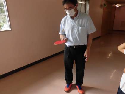 卓球クラブでは、校長先生も一緒に練習に参加しました。