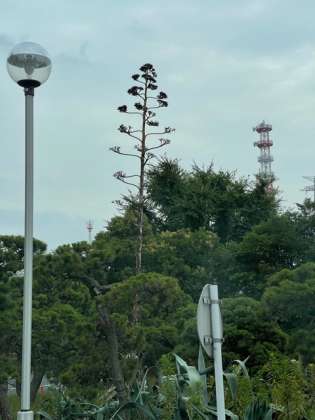 水再生センターの中には、沢山の植物がありました。その中に花を咲かせた後の竜舌蘭がありました。花が咲くと、次に咲くまで30年から100年もかかるのだそうです。