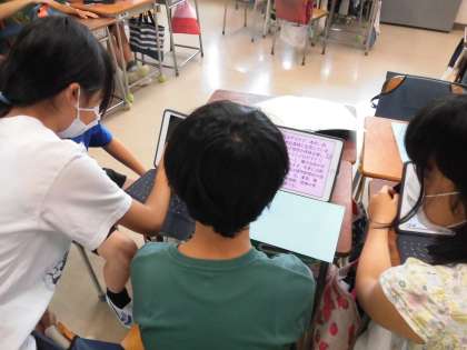 川場移動教室の調べ学習をグループで行っています。