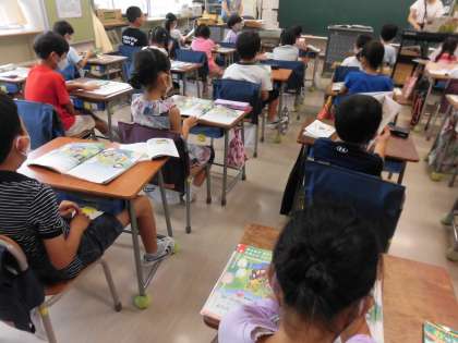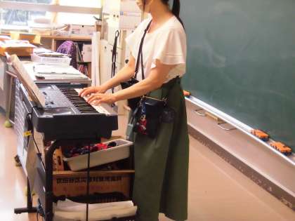 音楽の授業では、1学期に習った曲を音楽の先生がオルガンで弾きます。